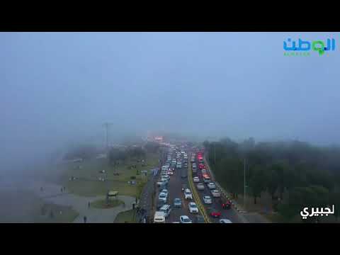 السياح يستمتعون بتناغم الضباب مع جمال الطبيعة في النماص