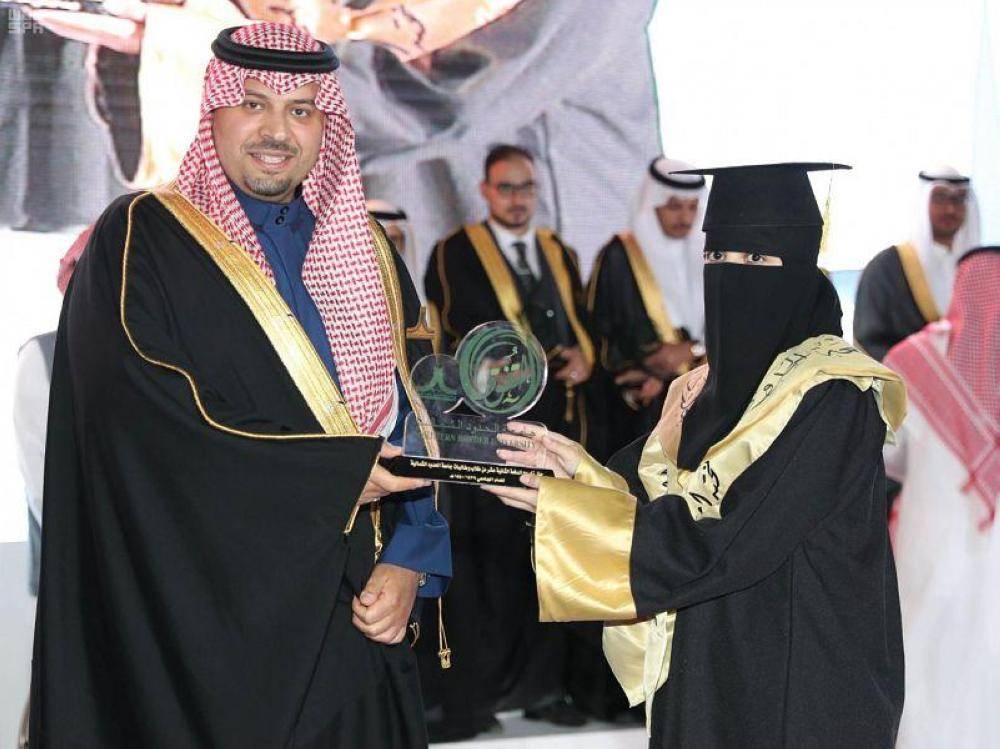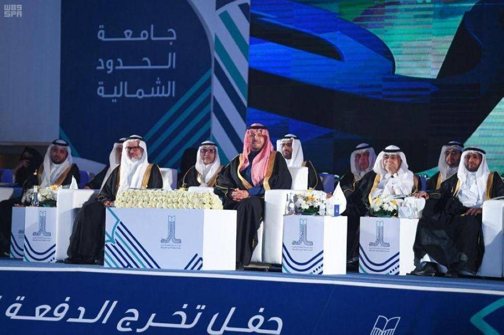 نوه أمير منطقة الحدود الشمالية الأمير فيصل بن خالد بن سلطان بن عبدالعزيز، بما توليه حكومة خادم الحرمين الشريفين الملك سلمان بن عبد العزيز آل سعود وولي العهد نائب رئيس مجلس الوزراء وزير الدفاع الأمير محمد بن سلمان بن عبدالعزيز من رعاية واهتمام بالتعليم في هذا الوطن. وقال الأمير فيصل بن خالد خلال رعايته أمس حفل تخريج الدفعة الـ12 من طلاب وطالبات جامعة الحدود الشمالية في مدينة الأمير عبدالله بن عبدالعزيز بن مساعد الرياضية بمدينة عرعر إن «القيادة الحكيمة اتخذت من رقي الوطن بذاته وبأبنائه وبناته هدفا راسخا شامخا مع بالغ الاهتمام بالموارد البشرية كمصدر من مصادر التنمية الاقتصادية، وبالتعليم كمورد من موارد الرقي الفكري والثقافي والمعرفي، من خلال المدارس بجميع مراحلها، والتعليم العالي، والدراسات العليا، وبرامج الابتعاث والتدريب، ومن خلال التقنية التي تعد رافدًا من روافد التطور الإنساني، لما للتفكير الابتكاري، والذكاء الاجتماعي، واتخاذ القرارات والمبادرات والتوجهات، واستثمار الطاقات والإمكانيات من بالغ الأهمية في رفع الإنتاجية». 2759 خريجًا قال مدير جامعة الحدود الشمالية الدكتور محمد بن يحيى الشهري إن «الجامعة تحتفي اليوم بتخريج الدفعة الـ12 من طلابها البالغ عددهم 2759 خريجا وخريجة»، مشيدا بالرعاية الكريمة من أمير منطقة الحدود الشمالية التي تجسد مدى الترابط بينه وأبنائه الطلاب ودعمه للمسيرة العلمية في المنطقة وما تلقاه الجامعة من اهتمام ومتابعة شخصية منه، مؤكدا أن الجامعة عملت على تسليح طلابها بأدوات العلم والمعرفة ليساهموا في إكمال مسيرة البناء والتنمية. قسم المهنة أعرب عبدالله العنزي في كلمة الخرجين عن شكر وتقدير جميع الخريجين لأمير منطقة الحدود الشمالية لرعايته المستمرة ودعمه لبرامج الجامعة وتحفيزه لأبنائه الطلاب والطالبات، مبرزا الجهود الكبيرة لأعضاء هيئة التدريس بالجامعة وأولياء الأمور، مقدما التهنئة للخريجين والخريجات. إثر ذلك، أدى خريجو كلية الطب قسم المهنة، ثم أعلن عميد عمادة القبول والتسجيل الدكتور شرف السفياني نتائج الخريجين. وفي ختام الحفل، كرم الأمير فيصل بن خالد بن سلطان بن عبدالعزيز الطلاب المتفوقين والحاصلين على مراتب الشرف الأولى في مختلف التخصصات، كما تسلم هدية تذكارية بهذه المناسبة عبارة عن مجموعةٍ من الإنتاج العلمي من مؤلفات أعضاء هيئة التدريس.