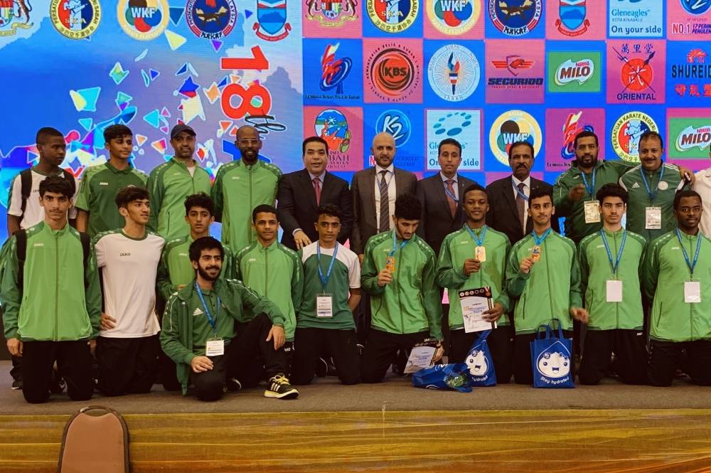 احتل المنتخب السعودي للكاراتيه المركز الثاني في الترتيب العام لفئة الرجال في ختام منافسات اليوم الثاني من البطولة الآسيوية الـ18 للناشئين والشباب وتحت 21 عاما والتي تقام حاليا بمدينة كوتا كينا بالو الماليزية. وأضاف نجوم الكاراتيه السعودية 3 ميداليات في اليوم الثاني بواقع ميداليتين ذهبيتين وميدالية برونزية ليصبح مجموع ما تحقق 7 ميداليات، 3 ذهبيات و 4 برونزيات، وضعت الأخضر بالمركز الثاني خلف اليابان متصدرة الترتيب. وخطف لاعب المنتخب السعودي للكاراتيه الأولمبي الحاصل على أول ذهبية سعودية في الأولمبياد محمد العسيري الميدالية الذهبية في منافسات القتال تحت وزن 61 كجم لفئة الشباب بعد فوزه على منافسة كيل زاهل من كازاخستان بـ5 نقاط دون مقابل، بينما انتزع زميله محمد القرني الميدالية الذهبية في منافسات القتال فوق وزن 76 كجم في فئة الشباب بعد فوزه على منافسه الياباني كايو هيرت بـ3 نقاط مقابل نقطة، فيما حقق اللاعب سند سفياني الميدالية البرونزية في منافسات القتال تحت وزن 76 كجم في فئة الشباب. وشهد اليوم الثاني من البطولة الحفل الرسمي لها حيث أقيمت بعض الفعاليات والاحتفالات بحضور رؤساء الاتحادات الآسيوية للكاراتيه وعمدة مدينة كوتا كينا بالو الماليزية.