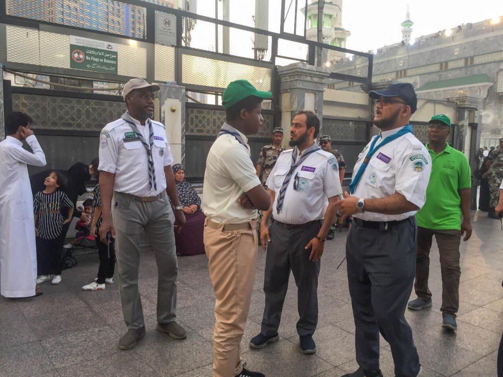 ويباشر 155 كشافا وقائدا بالشراكة مع لجنة السقاية والرفادة بإمارة مكة أعمال تنظيم دخول الوجبات الغذائية يوميا للمسجد الحرام وساحاته.
