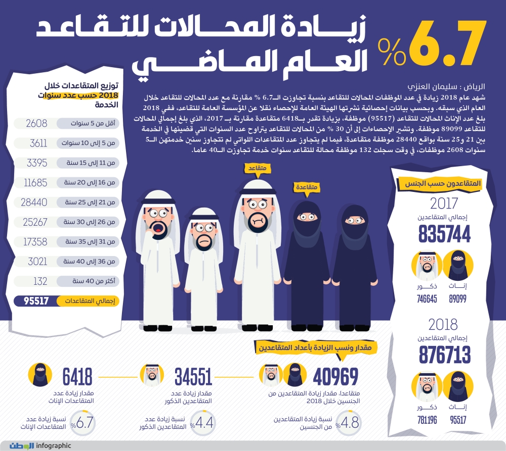 - 40,969 متقاعدا، مقدار زيادة المتقاعدين من الجنسين خلال العام 2018