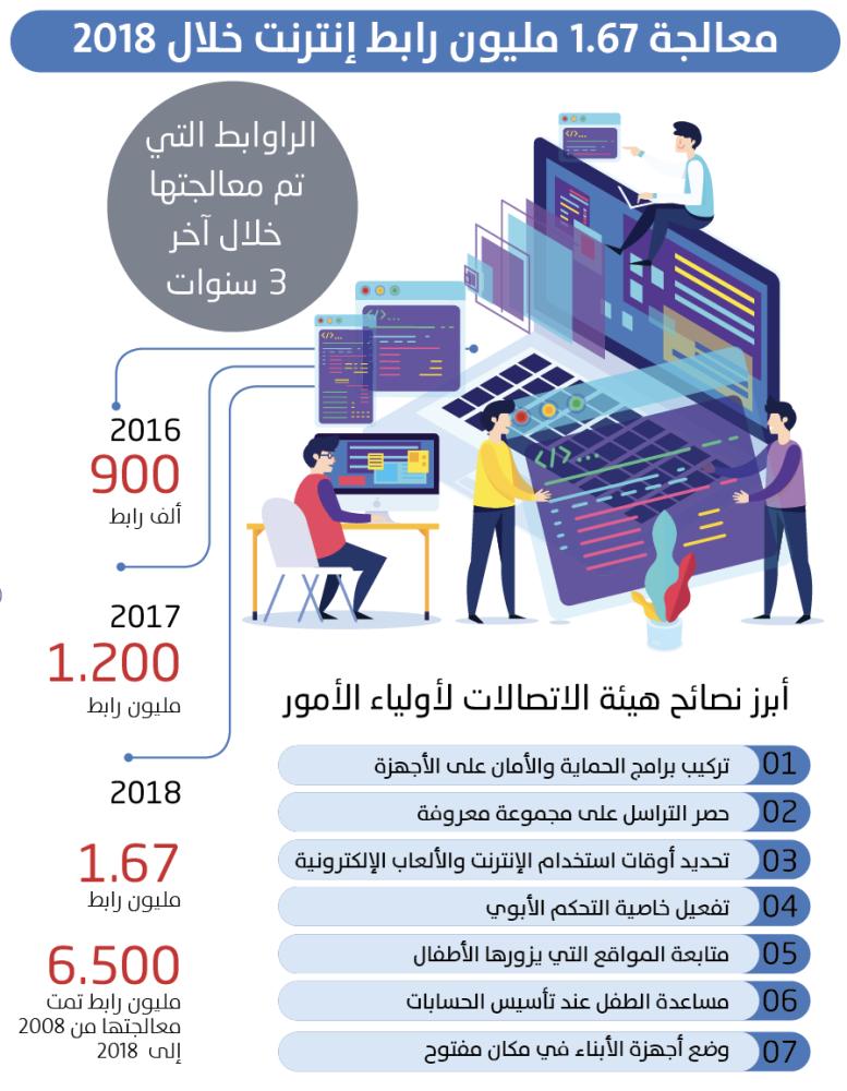 سعيا إلى الإسهام في حماية الأطفال والمراهقين من مخاطر الإنترنت، وتفعيل مهمة الأسرة في الحد من تعرضهم للمحتوى الضار على شبكة الإنترنت، أصدرت الهيئة إطارا تنظيميا، لتحفيز توفير خدمة التحكم الأبوي للمستخدمين، من خلال مقدمي الخدمة، ويؤمل منه الإسهام في توفير بيئة إنترنت أكثر أمانا للأطفال.