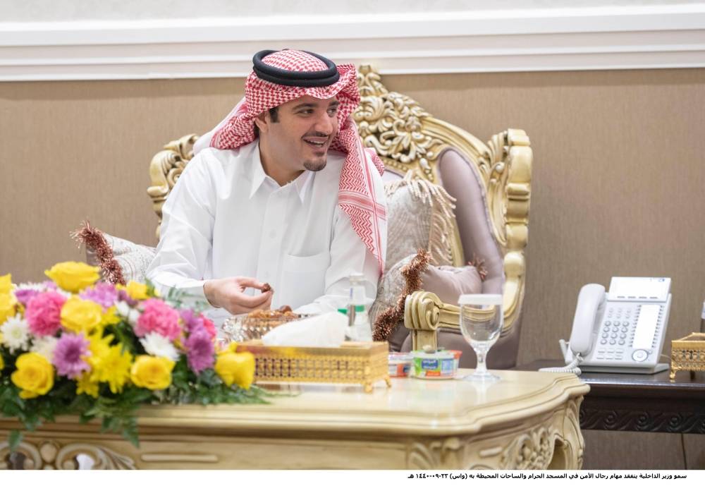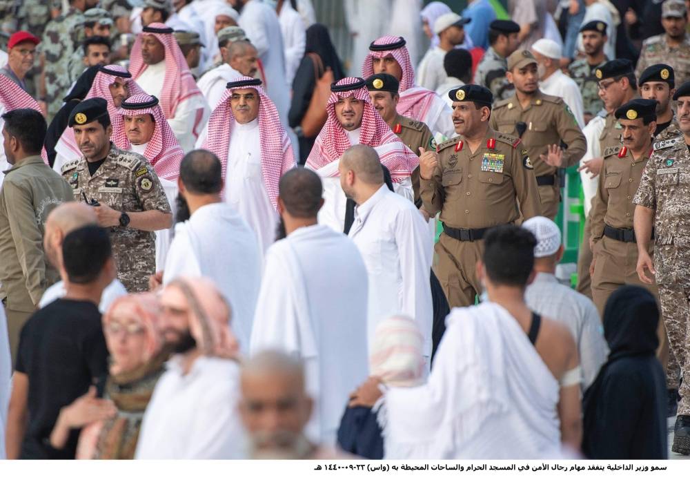 نقل وزير الداخلية الأمير عبدالعزيز بن سعود، تحيات خادم الحرمين الشريفين الملك سلمان بن عبدالعزيز، وولي العهد نائب رئيس مجلس الوزراء، وزير الدفاع الأمير محمد بن سلمان، إلى رجال الأمن المشاركين في مهمة العمرة لهذا العام، وتقديرهما للجهود التي يبذلونها خدمة لقاصدي الحرمين الشريفين. جاء ذلك، خلال تفقده -أمس- المهام التي يقوم بها رجال الأمن في المسجد الحرام والساحات المحيطة به، ومشاركتهم وجبة الإفطار، إذ استمع -خلال الجولة- التفقدية إلى شرح موجز من مدير الأمن العام، قائد قوات أمن العمرة الفريق أول خالد قرار الحربي، عن نتائج تنفيذ مراحل الخطة الأمنية للعمرة، والجهود الجارية لتنفيذ الخطط الخاصة بإدارة وتنظيم حركة زوار المسجد الحرام، وأدائهم نسكهم خلال الأيام المتبقية من رمضان المبارك. رافق وزير الداخلية خلال الزيارة، نائبُ وزير الداخلية الدكتور ناصر الداود، ووكيل وزارة الداخلية للشؤون الأمنية محمد المهنا.