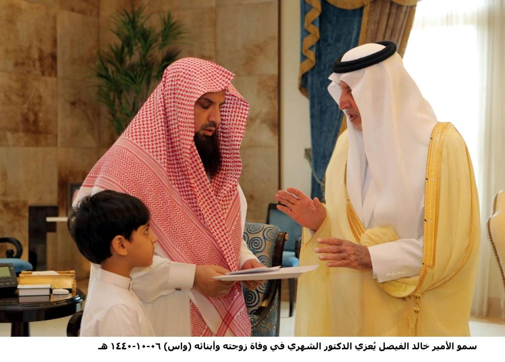 وقدّم الأمير خالد الفيصل تعازيه ومواساته للشهري، سائلا الله للمتوفين الرحمة والمغفرة، وأن يلهم ذويهم الصبر والسلوان.