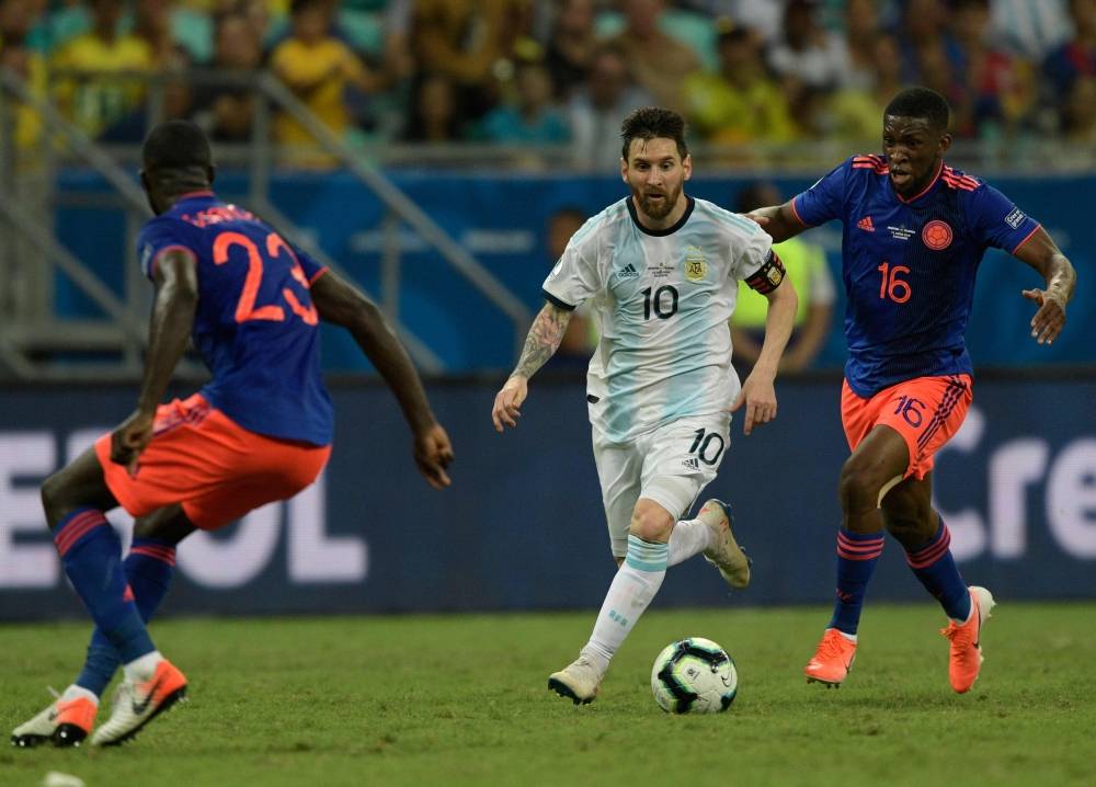 خيب المنتخب الأرجنتيني بقيادة نجمه ليونيل ميسي الآمال مجددا بخسارة مفاجئة أمام نظيره الكولومبي صفر/2 في سلفادور ضمن منافسات الجولة الأولى للمجموعة الثانية في مسابقة كوبا أميركا لكرة القدم في البرازيل. وسجل روجيه ماتينيث "71" ودوفان ثاباتا "86" الهدفين، وهو الفوز الأول لكولومبيا على الأرجنتين في المسابقة القارية منذ 20 عاما، وتعتبر الخسارة ضربة قوية للأرجنتين، التي لم يسبق لها خسارة المباراة الأولى في المسابقة منذ 40 عاما.