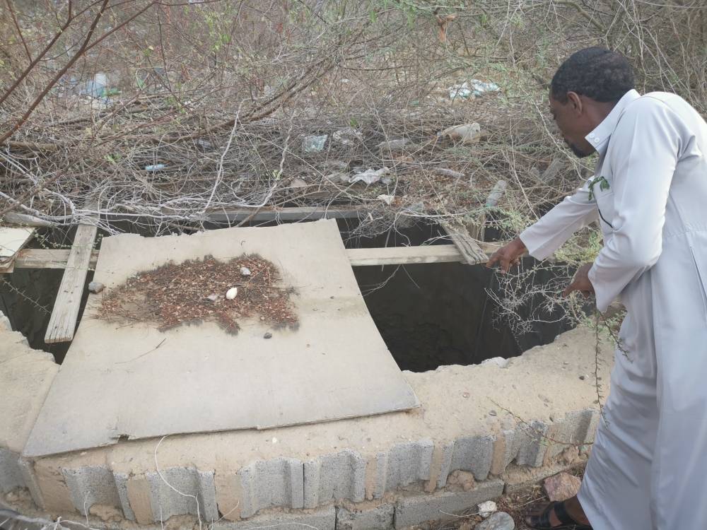 تذمر عدد من المواطنين بقرية القومة التابعة لمحافظة الدرب شمال منطقة جازان، من وجود بئر مغطاة بأخشاب قديمة، ومكشوفة في أجزاء كبيرة، وعميقة، ومليئة بالمياه، تهدد ساكني القرية. ( تصوير: محمد الحسين)