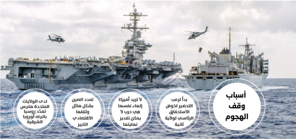 قال محللون سياسيون إن وقف الهجوم أكد أن الولايات المتحدة لا تريد إلهاء نفسها في خوض حرب تبدأ في الشرق الأوسط، ولا يمكن تقدير نهايتها في وقت تتمدد فيه الصين بشكل هائل، وتحديدا مناطق المحيط الهادئ أيّ في الجغرافيا، التي تبني فيها الصين قدرات عسكرية هائلة، كما أنّ ثقل التجارة العالمية والاقتصاد العالمي يتمركزان في المحيط الهادئ، وبالتالي رأت الإدارة الأميركية أنّ التصعيد العسكري مع إيران لن يفيدها، في وقت يثبت سلاح العقوبات أنّه قادر على تضييق الخناق حول إيران من الداخل، وجعلها تخضع للشروط الأميركية من دون الحاجة إلى مواجهتها عسكريا.