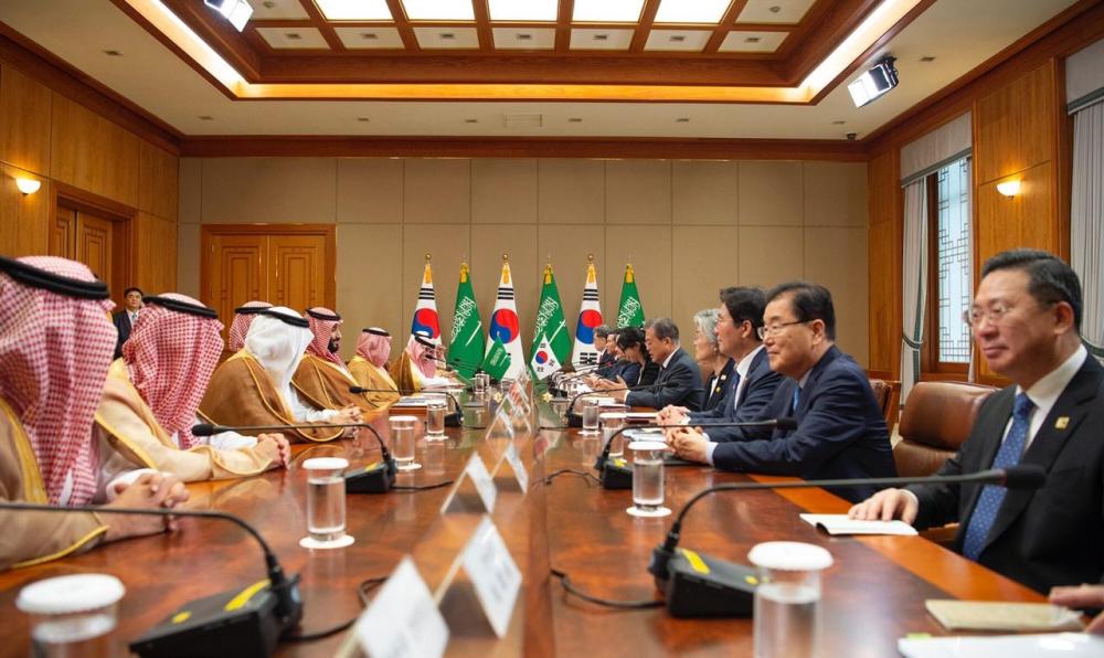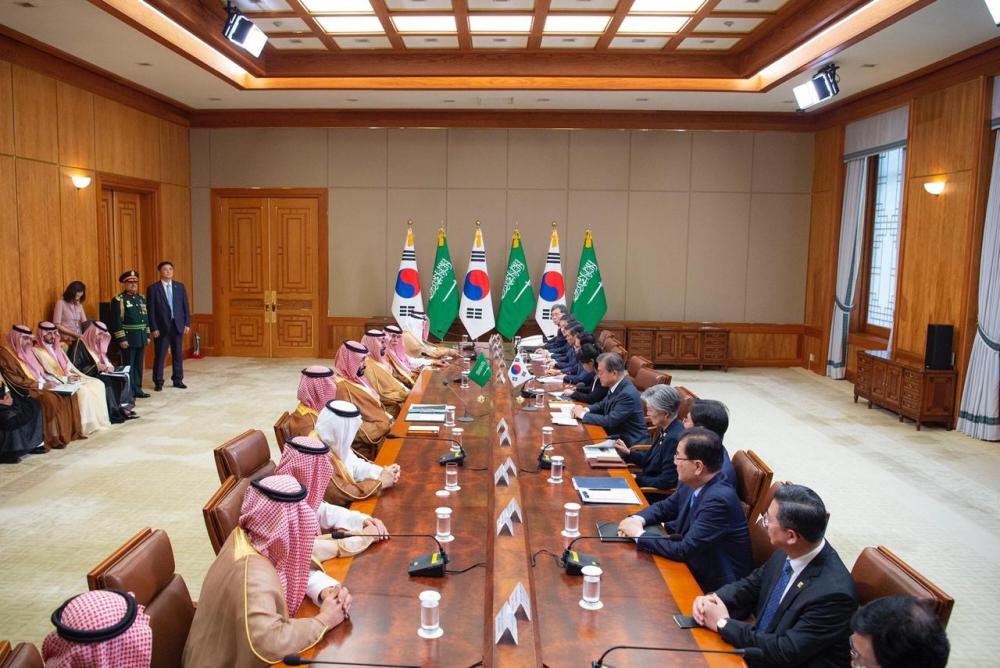 وقال سموه: نعلم بوجود إمكانيات هائلة وشراكة بين البلدين غير مستغلة وفرص لزيادة التبادل التجاري والاستثمار بين البلدين، بالإضافة إلى تطوير القدرات الدفاعية وتحقيق ازدهار اقتصادي من خلال البناء المشترك للصناعات وتطوير رأس المال البشري وتحسين جودة الحياة بين الشعبين، فالمملكة العربية السعودية لديها تجربة رائعة جدا مع كوريا الجنوبية في السابق ونريد أن نكررها بشكل أكبر وأفضل لمصلحة بلدينا.
