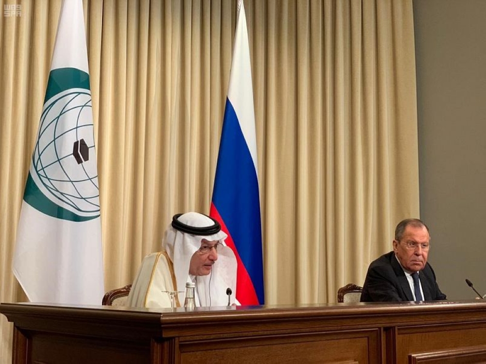 وأشاد بدعم دولة المقر «المملكة» للمنظمة ولقضايا العالم الإسلامي، موضحا أن المشاورات في موسكو بحثت القضايا ذات الاهتمام المشترك، وأن الجانبين لديهما الرغبة في توسيع وتوثيق هذه العلاقات، والدفع بها للأمام، مؤكدا أن مكافحة الإرهاب مسؤولية دولية مشتركة، وأن الإسلام بريء منها ومن التطرف الذي يُتهم به، وأن كثيرا من الدول الإسلامية تعاني مشكلات خطر الإرهاب والفوضى.