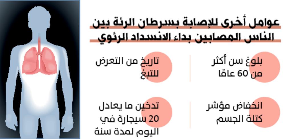 عوامل أخرى للإصابة بسرطان الرئة بين الناس المصابين بداء الانسداد الرئوي: