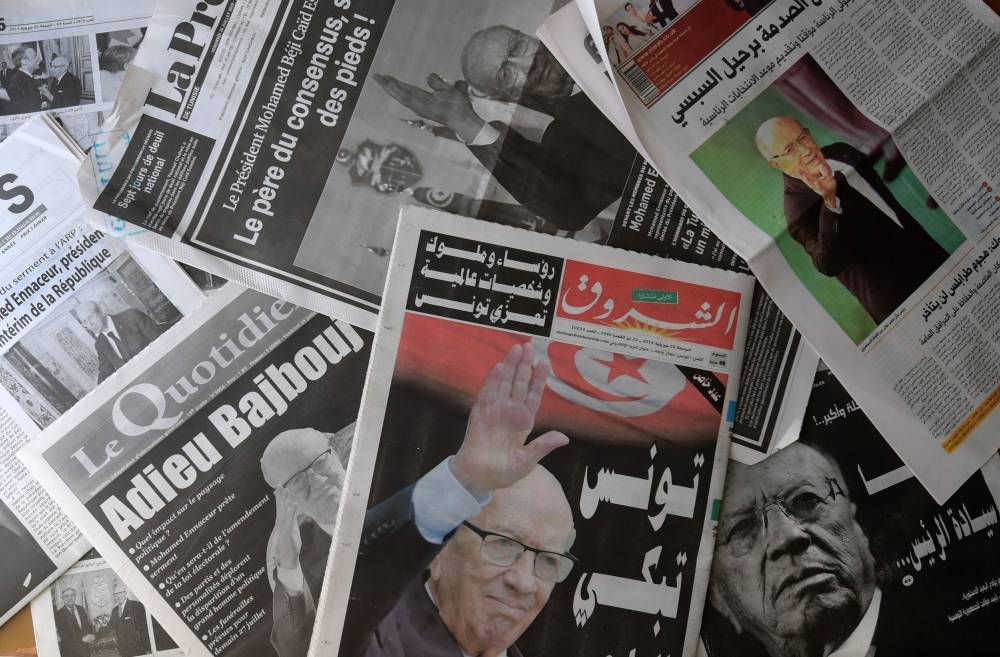 وأثنى العديد من التونسيين على الانتقال السريع والسلس للسلطة، في بلد يواصل مسيرته نحو الديموقراطية رغم التحديات والأزمات الاقتصادية والاجتماعية وتهديدات الجماعات الجهادية المسلحة، وكتبت صحيفة "لابراس" الحكومية والناطقة بالفرنسية "التونسيات والتونسيون أمام امتحان صعب ليبرهنوا أنهم يستحقون الديموقراطية وقد نجحوا في امتحان اإقناع العالم بأسره أن تونس بلد ديموقراطي"، ويقول جلال سليماني وهو أحد سكان العاصمة "المهم أن تستمر البلاد بشكل طبيعي، أثر فينا موته ولكن البلاد يجب أن تواصل التقدم".
