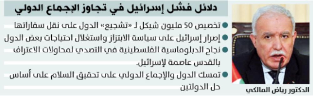 وأشارت إلى أن ذلك يعتبر اعترافا إسرائيليا رسميا بنجاح الدبلوماسية الفلسطينية التي يقودها الرئيس محمود عباس في التصدي للقرارات الأميركية المنحازة ومحاولات تل أبيب استدراج بعض الدول للاعتراف بالقدس عاصمة لدولة الاحتلال.