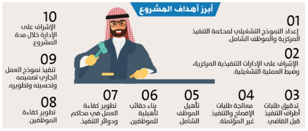 كما يهدف المشروع إلى الرقي بمستوى الخدمات المقدمة، وزيادة الكفاءة التشغيلية، ورفع قدرتها لنقل أنواع مختارة من القضايا إليها بعد تحويلها إلى سندات تنفيذية، بما يساهم في تقليل التدفق على المحاكم، وضمان المساهمة الفاعلة في تحقيق رؤية المملكة 2030.