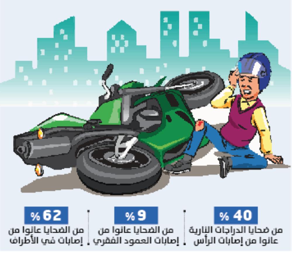 - 40 % من ضحايا الدراجات النارية عانوا من إصابات الرأس
