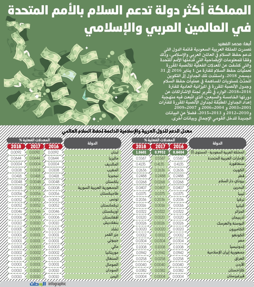 معدل الدعم للدول العربية والإسلامية الداعمة لحفظ السلام العالمي