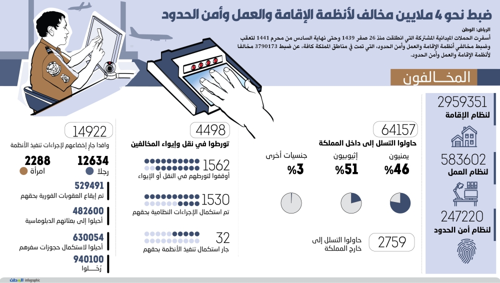 إجمالي المتورطين في نقل وإيواء المخالفين