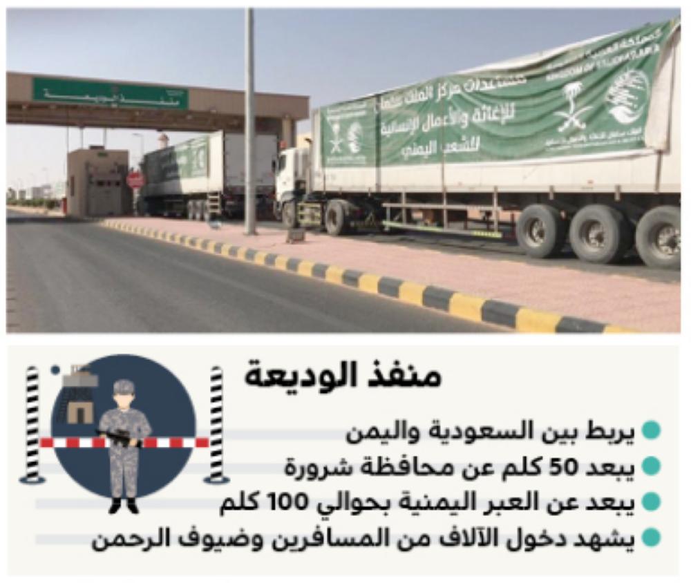 واصل مركز الملك سلمان للإغاثة والأعمال الإنسانية أعماله المستمرة عبر المنفذ لمساعدة اليمنيين من خلال تقديم العديد من المواد الغذائية والطبية عبر جسور من المساعدات الإنسانية المتواصلة والإغاثة العاجلة التي تنقذ الشعب اليمني في أحلك الأوضاع الإنسانية جرّاء اعتداءات ميليشيات الحوثي ضد الأبرياء، حيث عبرت من خلال منفذ الوديعة الحدودي آلاف الأطنان والمساعدات التي استفاد منها الملايين من الأشقاء اليمنيين.