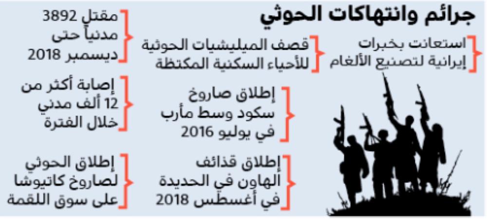 وأوضح البديجي أن ميليشيا الحوثي الإرهابية استعانت بخبرات إيرانية لتصنيع الألغام التي يروح ضحيتها المدنيون والأطفال والنساء، مؤكداً قصف الميليشيات الحوثية للأحياء السكنية والمناطق المكتظة بالسكان المدنيين بالصواريخ والهاون كالأسواق والمحلات التجارية وملاعب الأطفال، التي تمثل جريمة حرب لا تسقط بالتقادم.