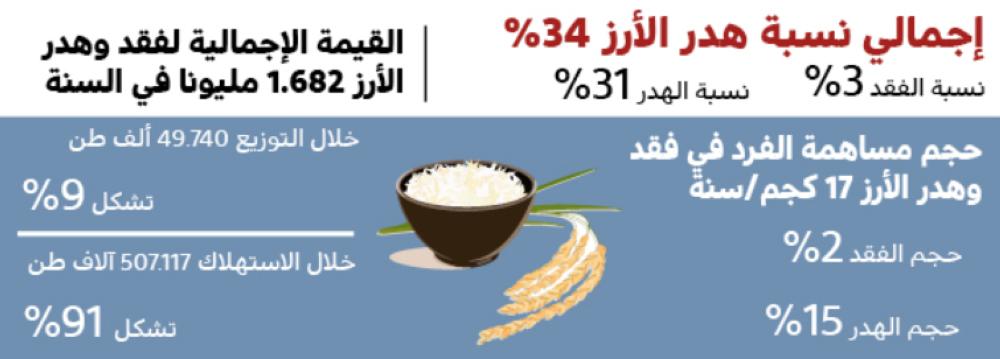 إجمالي نسبة هدر الأرز 34%