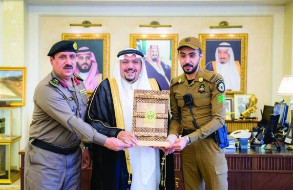 كرم أمير منطقة القصيم، الأمير الدكتور فيصل بن مشعل بمكتبه بمقر ديوان الإمارة بمدينة بريدة، أمس، وكيل رقيب ناصر الغفيص، نظير حسه الأمني العالي في إنقاذه الطفلة جوان الغلفص بمدينة بريدة.