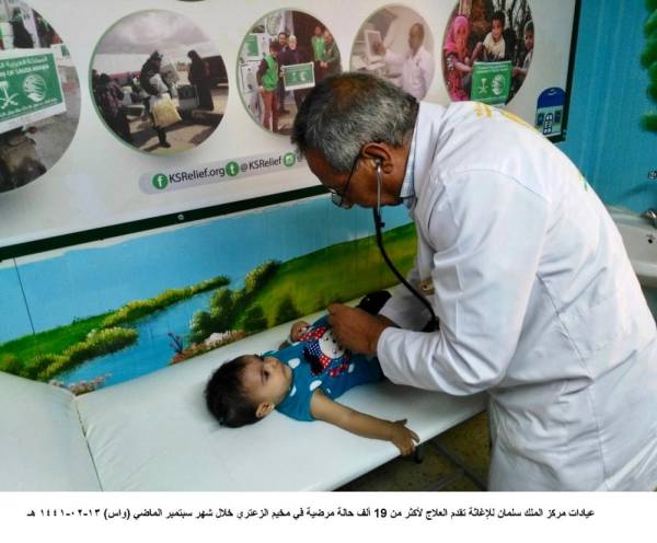 قدمت عيادات مركز الملك سلمان للإغاثة والأعمال الإنسانية خدماتها العلاجية لـ 19,239 حالة مرضية في مخيم الزعتري للاجئين السوريين في الأردن خلال شهر سبتمبر الماضي. وراجع عيادات الطب العام 6,648 شخصاً، وعيادات الأطفال 5,644 طفلاً، كما استقبلت عيادة النساء والولادة 2,567 امرأة، فيما تلقى 1,054 لاجئاً سورياً العلاج في عيادة الباطنية، وراجع عيادتي الأسنان 1,236 مراجعاً. كما تعاملت عيادتا الجراحة مع 961 حالة قدم لها العلاج المناسب، كما جرى تقديم 1,126 تطعيماً لـ 506 أطفال وامرأة، فيما بلغ عدد المستفيدين من مشروع مكافحة الأمراض المعدية 306 حالات، وراجع عيادة التغذية والرعاية الصحية 317 مريضاً. يذكر أن مركز الملك سلمان للإغاثة يولي الجانب الطبي الاهتمام الكبير وذلك من خلال تقديم العلاجات والمستلزمات الطبية المتنوعة للاجئين السوريين بانتظام، بالإضافة لاستهداف أصحاب الأمراض المزمنة والذين يحتاجون للعلاج بشكل دوري، لينعموا بأفضل رعاية صحية ممكنة خصوصًا في بيئة اللجوء الصعبة التي يعيشون بها. كما قام جهاز إسعاف جمعية سبل السلام الاجتماعية في منطقة المنية شمال لبنان بتنفيذ 10 مهمات إسعافية خلال الأسبوع الماضي بتمويل من مركز الملك سلمان للإغاثة والأعمال الإنسانية.