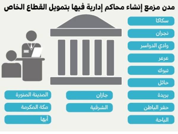 مدن مزمع إنشاء محاكم إدارية فيها بتمويل القطاع الخاص