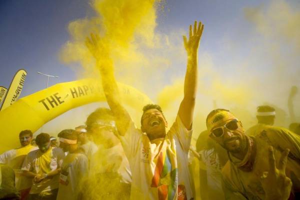 وانطلق المتسابقون من دون تحديد زمن محدد للوصول، بينما يتعرضون لرش الألوان الزاهية خلال مسيرتهم، التي يتوقفون فيها مرارا لالتقاط الصور قبل الوصول للنهاية، والحصول على ميدالية تذكارية، بغض النظر عن توقيت الوصول.