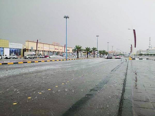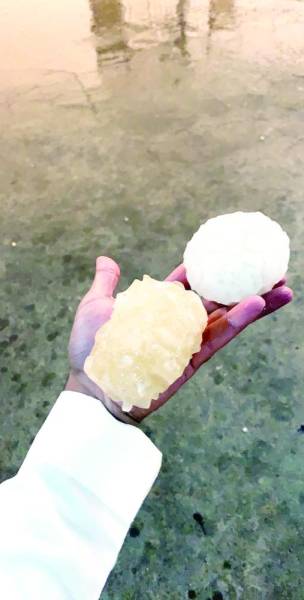 نزول حبات كبيرة من البرد مع الأمطار