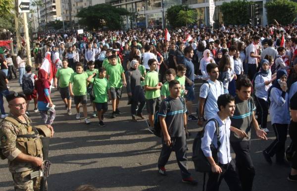 واحتشد مئات الطلاب أمس أمام وزارة التربية والتعليم العالي في بيروت، رافعين الأعلام اللبنانية ومطالبين بمستقبل أفضل، فيما رُفعت لافتات كُتب على إحداها «لا دراسة ولا تدريس حتى يسقط الرئيس»، وهتفت صبيّة «كلهم يعني كلهم حرامية».
