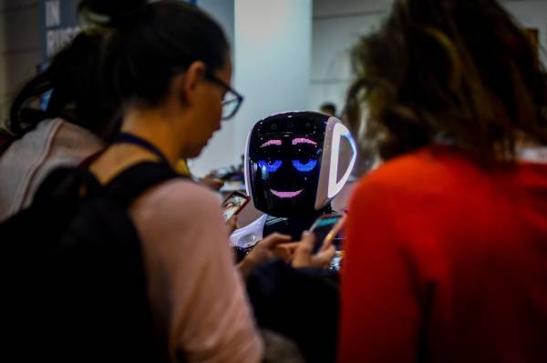 أحد الروبوتات المعروضة في قمة الويب في العاصمة البرتغالية لشبونة والتي تعد أكبر قمة تقنية في أوروبا  (أ ف ب)