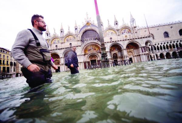 واجهت مدينة فينيسيا الإيطالية تهديدا جديدا بتعرضها لفيضانات أمس، حيث زاد منسوب المياه فوق المستوى الطبيعي بـ160 سنتيمترا، حيث تم إغلاق المدارس، إلى جانب قصر «دوجي»، مع فيضان ميدان «سانت مارك».