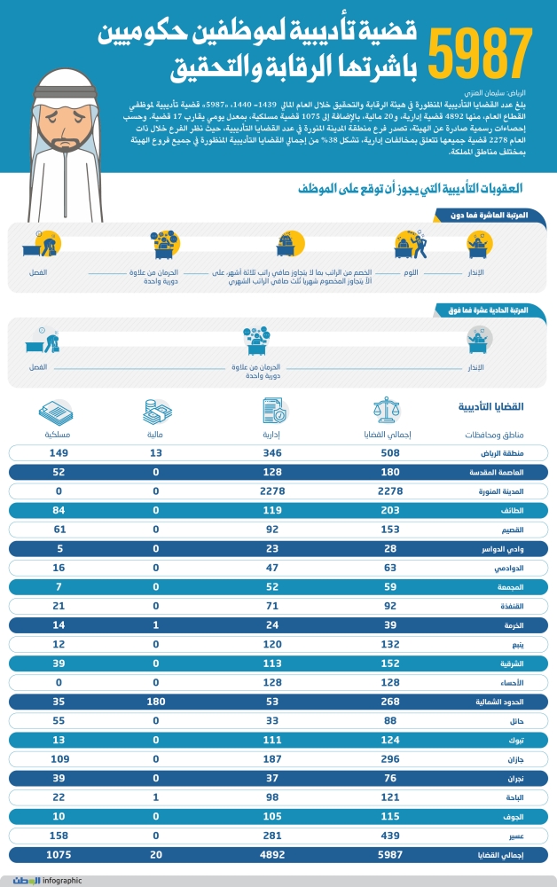 5987 قضية تأديبية لموظفين حكوميين باشرتها الرقابة والتحقيق