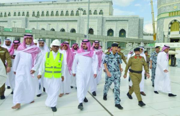 رأس نائب أمير منطقة مكة المكرمة الأمير بدر بن سلطان الأسبوع الماضي اجتماعا لمناقشة آخر أعمال التوسعة السعودية الثالثة والعناصر المرتبطة بها، حيث وقف ميدانيا على سير الأعمال الجاري تنفيذها. وفي جولته بالمسجد الحرام من باب العمرة، استمع إلى الأعمال الجاري تنفيذها والتي تشمل الأعمال الإنشائية المدنية لباب إسماعيل، وسيتم الانتهاء منها قبل حج هذا العام، ثم تفقد سموه الأعمال التشطيبية لباب العمرة. واطلع نائب أمير منطقة مكة المكرمة على أعمال الرواق القديم والمكبرية الجنوبية بالمسجد الحرام، والتي سيتم الانتهاء منها قبل موسم رمضان الحالي. ووقف الأمير بدر بن سلطان على الأعمال في أقواس صحن المطاف، حيث تم الانتهاء من 14 قوسا من أصل من 38 قوسا سيتم الانتهاء منها كليا قبل موسم رمضان. ويعمل في تنفيذ مشاريع التوسعة السعودية الثالثة قرابة 5 آلاف عامل.