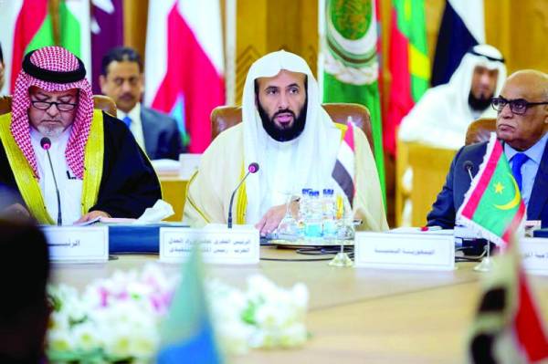 ورأس الوفد السعودي إلى الاجتماع وزير العدل، الرئيس الفخري لمجلس وزراء العدل العرب، رئيس المكتب التنفيذي للمجلس الشيخ الدكتور وليد الصمعاني.