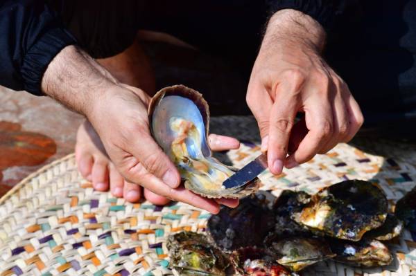 الإماراتي عبد الله السويدي يعرض لؤلؤة عثر عليها في محار في مزرعة لؤلؤة السويدي، في الإمارة الشمالية لرأس الخيمة. (أ ف ب)