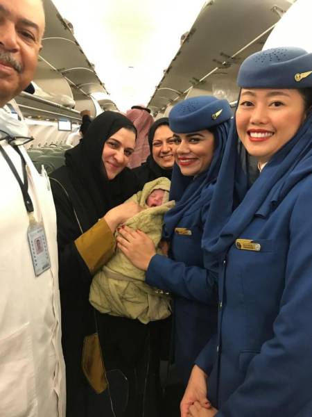 وأضافت بعد ذلك تم الاتصال من قبل كابتن الطائرة لمطار الملك خالد لتجهيز الإسعاف على أرضية المطار، وهو ما حدث بالفعل، حيث تم نقل السيدة ومولودها للمستشفى وهم بصحة جيدة.