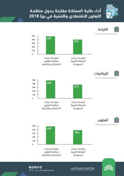 ويعدّ البرنامج الدولي لتقويم الطلبة (بيزا PISA) الذي شاركت فيه المملكة العام الماضي 2018م مع دول منظمة التعاون الاقتصادي والتنمية، التي يبلغ عددها 37 دولة مضافا إليها 42 دولة من قارات العالم المختلفة، دراسة استقصائية تُجرى كل 3 أعوام على الطلبة في سن 15 عامًا. كشفت نتائج (بيزا PISA 2018م) أن طلابنا حققوا مجموع نقاط أقل من المتوسط في بلدان منظمة التعاون الاقتصادي والتنمية في (القراءة، الرياضيات، العلوم)، كما حققت نسبة صغيرة من طلابنا أعلى مستويات الإتقان (المستويين الخامس والسادس) مقارنة بالمتوسط في بلدان منظمة التعاون الاقتصادي والتنمية في مجال واحد على الأقل (القراءة أو الرياضيات أو العلوم)، كما حقّقت نسبة صغيرة من طلابنا أدنى مستوى من الإتقان (المستوى الثاني ومستوى أعلى) في المجالات الثلاثة جميعها.