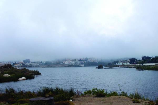 تمتاز مدينة أبها بوجود الضباب فيها بشكل دائم وعلى مدار العام، لارتفاعها ما يزيد على 2000 عن سطح البحر، وانكسارات الجبال فيها نحو السهول التهامية، فتتشكل الغيوم صعودا وتتحول إلى ضباب يعم المدينة. وفي الصورة شابان يستمتعان بالجلوس في أحد المقاهي المكشوفة، حيث يشاهدون الضباب وهو يتنقل من مكان إلى آخر. وفي الصورة سد بحيرة السد ويبدو الضباب يحيط بالمكان. (تصوير: عبدالله الشهري)