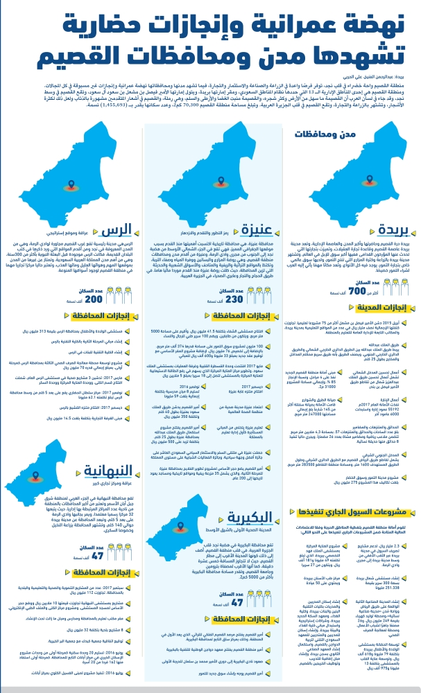 نهضة عمرانية وإنجازات حضارية تشهدها مدن ومحافظات القصيم