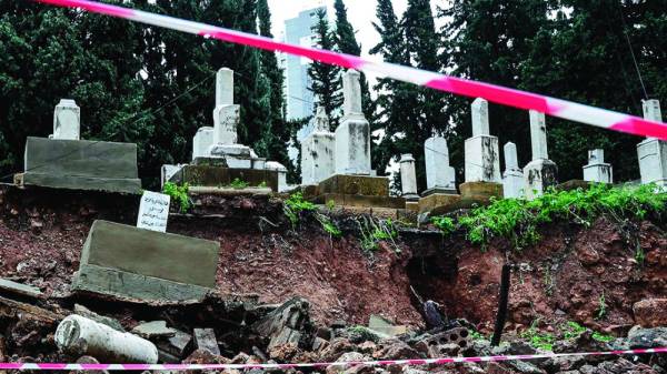 ألحقت عاصفة وأمطار غزيرة تضرب لبنان منذ الأربعاء، أضرارا بمقبرة اليهود التاريخية والوحيدة في منطقة رأس النبع وسط بيروت، إذ انهار جزء من حائط المقبرة، وسقطت معه أضرحة كاملة حُفر عليها باللغة العبرية، فضلا عن هياكل عظمية. وتضررت 4 أضرحة تعود إلى أربعينات القرن الماضي. وتعود المقبرة اليهودية في بيروت إلى سنوات 1820، وتضم 3407 قبور، فيما لا زال هناك 29 يهوديا فقط يعيشون في لبنان، ويعترف لبنان بالطائفة اليهودية كواحدة من 18 طائفة، يقر رسميا بوجودها.