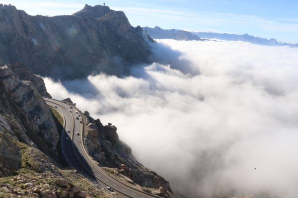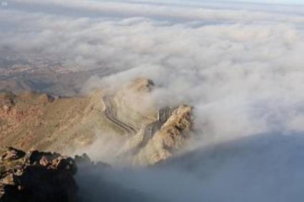 غطّى الضباب الكثيف، منذ ساعات الصباح الباكر أمس، أعالي قمم الهدا والشفا بمحافظة الطائف على ارتفاع 2800 متر عن سطح البحر، ليشكل لوحة بانورامية جذبت العيون للمكان وشرحت الصدور، عبر نسمات عليلة تنبعث من رائحة الأزهار الطائفية الندية.