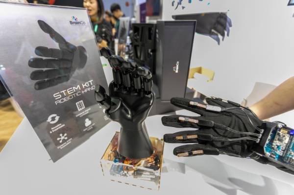 يد روبوتية في معرض الإلكترونيات الاستهلاكية 2020 (CES) في لاس فيجاس، وهو أحد أكبر معارض التقنية في العالم، والذي يعرض فيه أكثر من 4500 شركة تمثل النظام البيئي لتكنولوجيا المستهلك بالكامل. (أ ف ب)