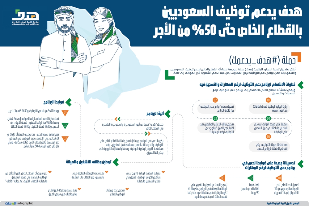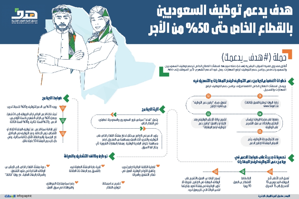 - يتحمل "هدف" نسبة من أجور السعوديين والسعوديات العاملين في القطاع الخاص