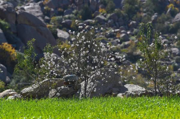 اكتست مزارع جنوب الطائف هذه الأيام على امتداد «حداد، وثقيف وميسان، وبني مالك، والقريع» بياض ثمار اللوز في مرحلة تسمى «بالفضييض» مع تباشير حلول فصل الربيع، النصف الثاني من يناير الجاري. (الطائف: واس)