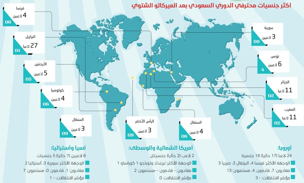- أكثر جنسيات محترفي الدوري السعودي بعد الميركاتو الشتوي