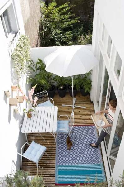 يمكنك تحويل شرفتك إلى صغيرة وجميلة. ضع بها وسادة الأرض، وعدد قليل من الزهور بما يكفي لتوفير جو إيجابي بعيدا عن حياة المدينة، ويساعدك على التقاط بعض أشعة الشمس.