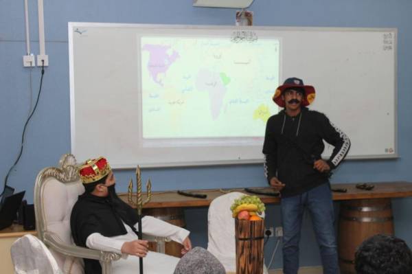 يبدأ محمد الحربي، معلم مادة الدراسات الاجتماعية، بثانوية الخبراء، في مكتب تعليم رياض الخبراء، التابع للإدارة العامة للتعليم بمنطقة القصيم، عمله خارج صندوق الرتابة والتكرار، وفي شكل وهوية مختلفة، متجددة، حينما يتأبط الحربي دفتر التحضير، ومذكرات الشرح في يمينه، ويحمل الملابس التاريخية، والأدوات التعريفية، والمقتنيات التراثية بشماله، التي تجعل من قاعة الدرس مسرحًا إغريقيًا، تتوافر فيه متطلبات العرض المتكامل، من أقنعة وأزياء ونصوص، التي تعزز من استحضار القيمة العلمية والمعرفية للدرس، ليجد الطلاب أنفسهم أمام تحول زماني ومكاني، ينقلهم نحو عصور مضت، وعوالم أخرى، يعيشون فيها حقيقة الدرس ومقصده وقيمته العلمية؛ ليعود عليهم بمعرفة متجذرة وراسخة في الذهن، ومتطبعة في السلوك. يستدعي في أحايين كثيرة، وخلال تقديمه مادته العلمية، العديدَ من الشخصيات التاريخية، والأحداث العالمية، ليطبق التعلم النشط، بطريقة لعب أو تمثيل الأدوار، حيث يقوم الطلاب بلعب أدوار شخصيات تاريخية أو خيالية، بحسب طبيعة الدرس، ويُعطى كل واحد منهم عنصرًا من عناصر الدرس، ويقوم بتجلية وتوضيح هذا العنصر لزملائه من خلال تمثيل الدور. بين الحربي، أن الهدف من تفعيل استراتيجية لعب الأدوار، تمكُّن الطلاب من تطبيق مهارات التفكير الناقد، وإكسابهم القدرة على توليد الأسئلة، والمهارة في حل المشكلات، وتعزيز روح التفاعل والتواصل مع الآخرين، وقبل ذلك كله تعزيز الثقة، وزيادة العمل الإبداعي؛ مما يزيد من دافعية طلب العلم، والبحث عن المعرفة.