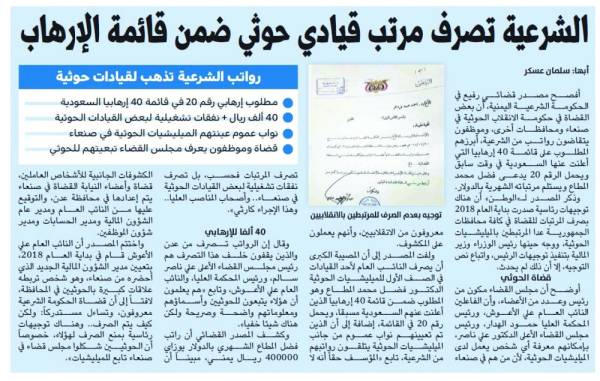 وأكد المصدر أن كل ما ورد من معلومات بشأن صرف مرتبات المذكور أو أي عناصر مرتبطة بالحوثيين، لا يمت إلى الحقيقة بصلة، ولا يعدو كونه تشهيرا بقضاة وبهيئات قضائية، تؤدي واجباتها في ظروف صعبة.