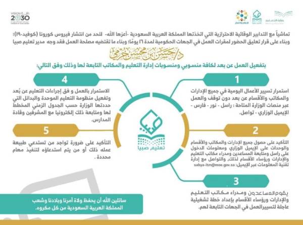 وجه مدير تعليم صبيا حسن محسن خرمي رسالة للميدان التربوي والتعليمي، حيث خاطب فيها منسوبي إدارة الإدارة من مشرفين وقادة مدارس ومعلمين وإداريين وفنيين، وأوضح فيها أن مستوى الرضا عال جداً من خلال مراجعة التقارير الأولية حول مستوى التفاعل مع بوابة المستقبل للمدارس المسجلة فيها وللمدارس التي بدأت بتسكين الطلاب والطالبات والمعلمين والمعلمات على منظومة التعليم الموحد ومشاهدة قنوات عين، مضيفا أن حماس العاملين في الميدان التعليمي وإخلاصهم في القول والعمل هو سر نجاح هذه التجربة، مشيراً إلى أنه تماشياً مع التدابير الوقائية الاحترازية التي اتخذتها الدولة -أعزها الله- للحد من انتشار فيروس كورونا، تم تعليق الدراسة وأصبحت تقدم عن بعد، كما تم تعليق الحضور لمقرات العمل لمدة 16 يومًا، ومع ذلك سيستمر العمل عن بعد، مؤكداً أن العمل في إدارة تعليم صبيا أسوة بجميع القطاعات الحكومية يسير مع التعليق دون انقطاع ويدار عن بعد باستخدام التقنيات الحديثة التي وفرتها حكومة هذه البلاد لخدمة أكثر من 148 ألف طالب وطالبة. وعبر مدير تعليم صبيا عن سعادته وزملائه في إدارة تعليم صبيا بالاستمرار في تقديم الخدمات من خلال جميع المنصات الإلكترونية المتاحة نور وفارس وراسل والبريد الإلكتروني الوزاري ومنصة تواصل، وذلك لإنجاز جميع طلبات الجمهور ومعاملاتهم. كما وجه الدكتور الخرمي رسالة لأولياء الأمور بأن يكونوا مع أبنائهم، مضيفا أن الجميع معهم، ملمحاً بأنه يقف خلف تقديم الخدمة التعليمية لأبنائنا وبناتنا الطلاب والطالبات في 10محافظات تشكل النطاق الجغرافي لإدارة تعليم صبيا أكثر من 17 ألف مشرف ومشرفة ومعلم ومعلمة وإداري وإدارية.