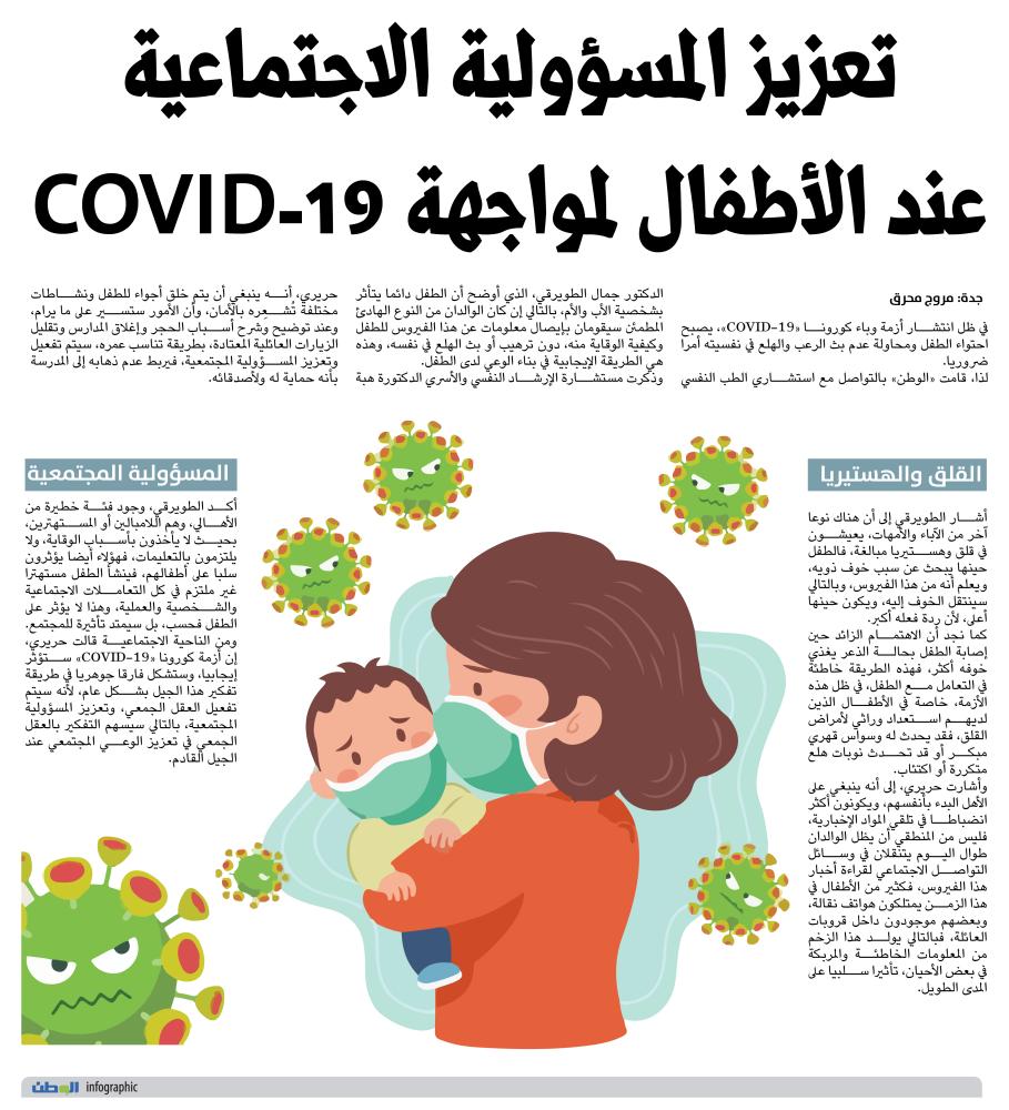 أشار الطويرقي إلى أن هناك نوعا آخر من الآباء والأمهات، يعيشون في قلق وهستيريا مبالغة، فالطفل حينها يبحث عن سبب خوف ذويه، ويعلم أنه من هذا الفيروس، وبالتالي سينتقل الخوف إليه، ويكون حينها أعلى، لأن ردة فعله أكبر. كما نجد أن الاهتمام الزائد حين إصابة الطفل بحالة الذعر يغذي خوفه أكثر، فهذه الطريقة خاطئة في التعامل مع الطفل، في ظل هذه الأزمة، خاصة في الأطفال الذين لديهم استعداد وراثي لأمراض القلق، فقد يحدث له وسواس قهري مبكر أو قد تحدث نوبات هلع متكررة أو اكتئاب. وأشارت حريري، إلى أنه ينبغي على الأهل البدء بأنفسهم، ويكونون أكثر انضباطا في تلقي المواد الإخبارية، فليس من المنطقي أن يظل الوالدان طوال اليوم يتنقلان في وسائل التواصل الاجتماعي لقراءة أخبار هذا الفيروس، فكثير من الأطفال في هذا الزمن يمتلكون هواتف نقالة، وبعضهم موجودون داخل قروبات العائلة، فبالتالي يولد هذا الزخم من المعلومات الخاطئة والمربكة في بعض الأحيان، تأثيرا سلبيا على المدى الطويل.